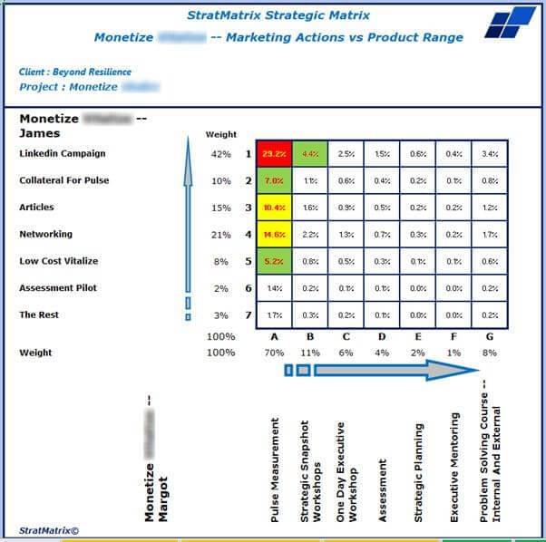StratMatrix© is used when the StratSnap© process surfaces two dimensions in answer to a Focus Question.